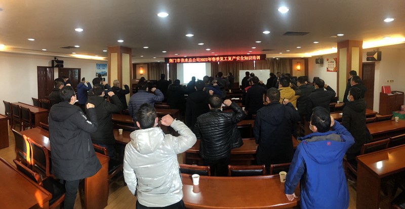 2021年3月2日,供水總公司為確保節(jié)后工程項(xiàng)目開(kāi)復(fù)工有序有力推進(jìn)。公司組織了荊門(mén)市給排水安裝工程有限公司、荊門(mén)市市政順泉有限公司、維修公司等5個(gè)施工單位荊門(mén)萬(wàn)通勞務(wù)有限公司、湖北凱越工程建設(shè)有限公司、荊門(mén)正宏建筑勞務(wù)有限公司等16家勞務(wù)分包單位參加了此次培訓(xùn)。