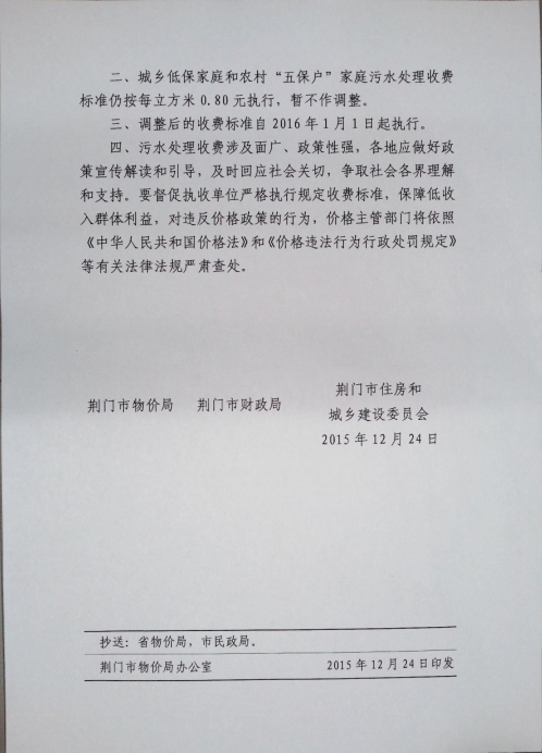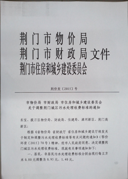 關(guān)于調(diào)整城區(qū)污水處理收費標(biāo)準(zhǔn)的通知