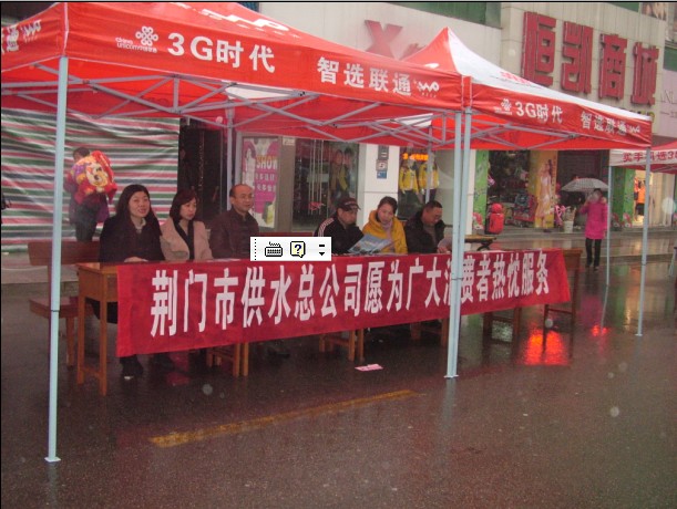 3月15日,市供水總公司黨委書記、副總經理陳永根率客服中心、二供所等窗口人員,冒雨在中天街開展消費日活動,宣傳供水政策知識、現場接受用戶咨詢、認真開展服務。