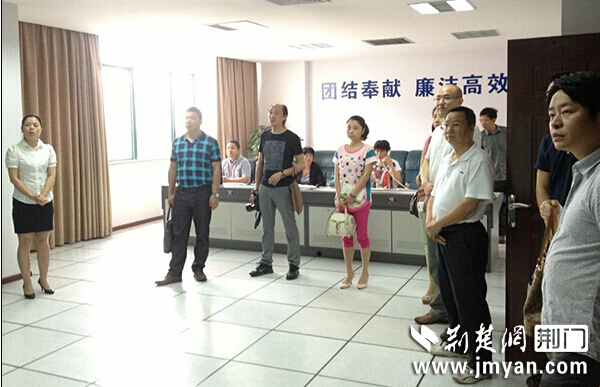 圖為黨委書記陳永根陪同市網(wǎng)管辦主任高萌及各媒體記者參觀調(diào)度監(jiān)控中心
