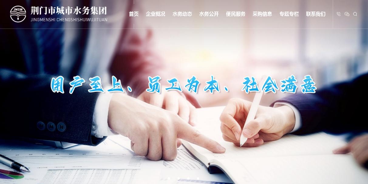 全新改版后的荊門市城市水務集團官網(wǎng)