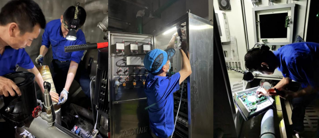 盛夏時節(jié)城區(qū)用水量大,供水設備幾乎滿負荷運行,較之室外高溫,泵房內(nèi)更加悶熱潮濕,他們?nèi)硇耐度牍ぷ?,衣衫印?/font>“鹽花花”卻渾然不覺。為保障夏季高峰用戶用水正常,他們增加了設備巡檢和維保頻次,做到各區(qū)域各環(huán)節(jié)全覆蓋,不留死角和盲區(qū)。