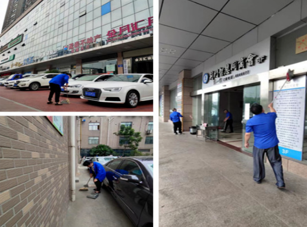 為把創(chuàng)城迎檢工作真正落實到實處,物業(yè)公司主動作為,積極推進。一是積極開展白色垃圾、煙頭等清理清掃工作,做到不留盲點、不留死角。二是重點整治車輛亂停亂放等突出問題,及時更換損壞老化的設施設備,加大排查安全隱患力度。三是集中修剪綠化,清理雜草枯草,確保小區(qū)環(huán)境干凈美化,及時修補破損路面、墻面。盡管頭頂烈日,汗如雨下,物業(yè)公司全體人員嚴格按照“八無十清理”創(chuàng)城標準,堅守一線,用汗水和熱情守護小區(qū)文明,助力創(chuàng)城達標。