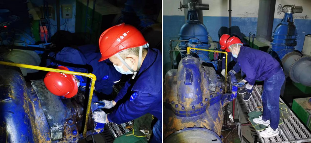 疫情期間,交通管制,運輸材料十分困難。為保證特殊時期水質達標,三水廠值班人員冒雨,徒手將20噸凈化劑搬運至加礬車間。針對廠內切換濾池與沉淀池管道的閥門運行不暢現(xiàn)象,三水廠支部研究決定,更換閥門。由于使用年限較長,螺桿、螺帽已經全部銹死,空間狹小,拆卸極為困難,但在崗同事們團結一心,迎難而上,僅用1個多小時就完成了原本需要5小時的工作量,圓滿完成任務。