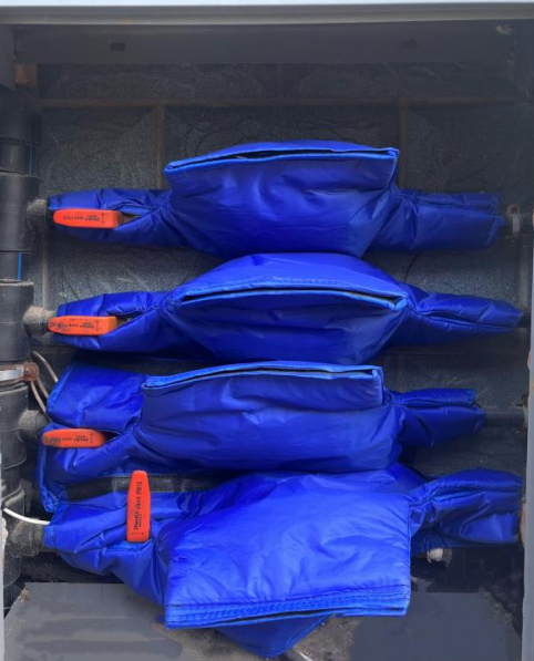 沒有調(diào)查,就沒有發(fā)言權(quán)。2022年,集團(tuán)通過“線上+線下”調(diào)研,對比試用多款防護(hù)套后,鎖定最優(yōu)款--“小藍(lán)襖”。這款防護(hù)套選用牛津布填充白絲棉,雙面防水,全方位包裹,安裝簡便,保溫效果絕佳。最讓人稱道的是,它自帶的魔術(shù)貼口和預(yù)留孔洞完美解決了前述問題,非常易于查看水表和日常維保。