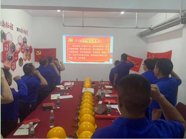 全體黨員面對(duì)黨旗莊嚴(yán)宣誓,重溫入黨誓詞,感悟入黨初心。