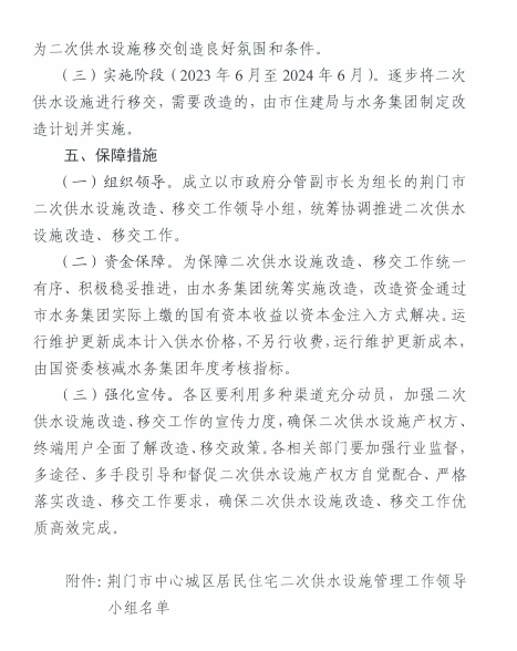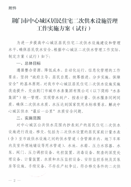 關(guān)于印發(fā)《荊廣市中心城區(qū)居民住宅二次 供水 設(shè)施管理工作實施方案(試行)》的通知