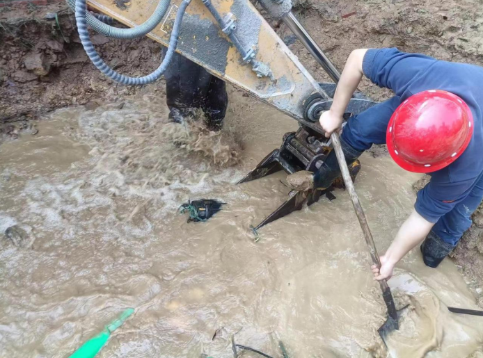 經(jīng)初步判斷,原因是地基沉降不均勻導致管道應力過大。因化工廠內(nèi)地下管線復雜,荊襄公司結合實際迅速制定搶修方案,通過機械和人工配合作業(yè)。開挖過程中,管道中余水不停滲到基坑,需要不間歇抽水、排水。雖然氣溫已近冰點,維修人員沒有絲毫退縮,在齊膝的積水中奮戰(zhàn)兩個多小時,完成路基開挖。