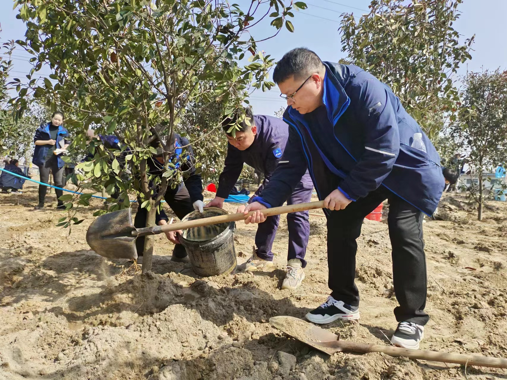 圖為市水務集團職工植樹現(xiàn)場