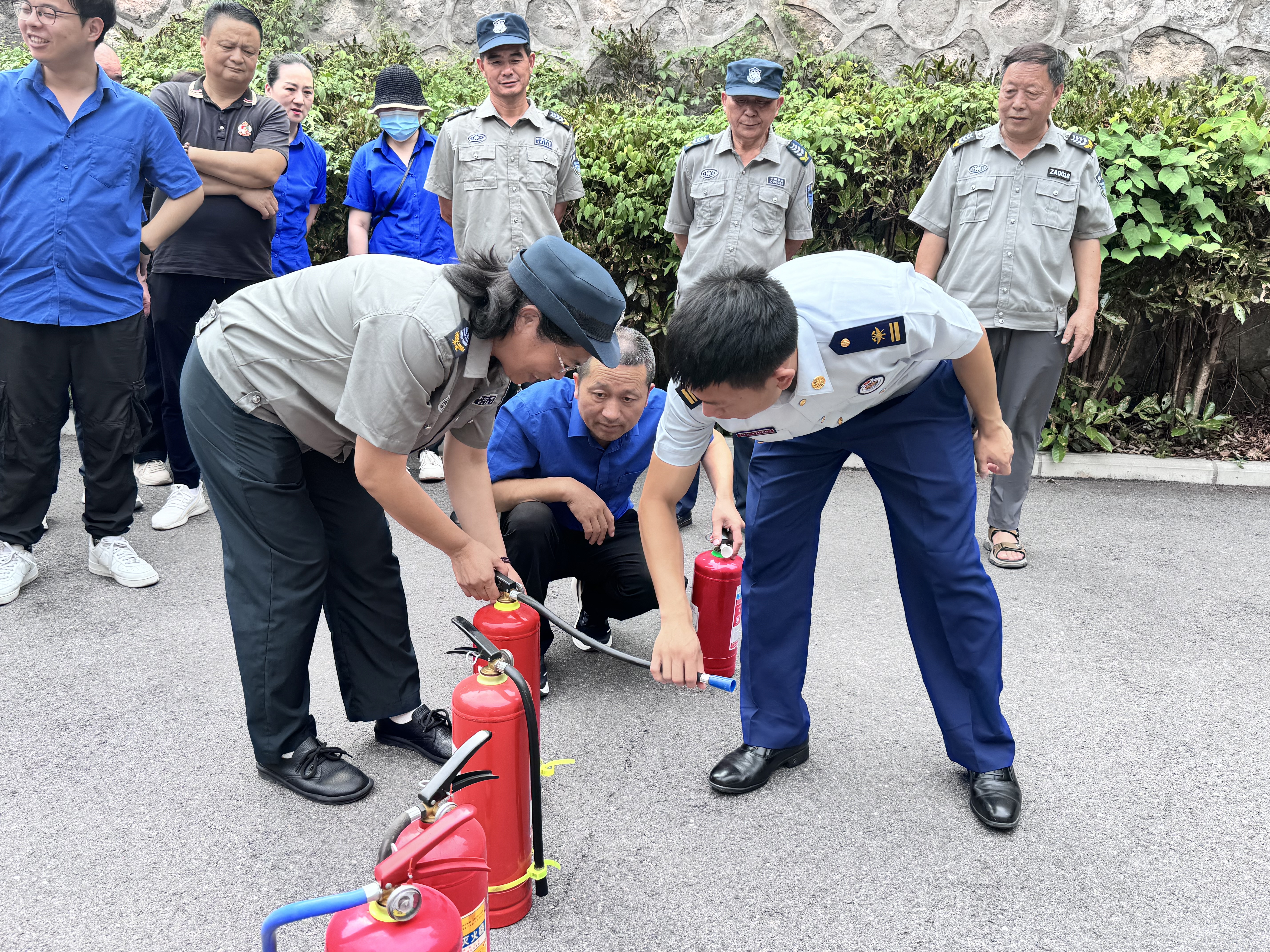 隨后,參人員在馬教官的指導(dǎo)下,按規(guī)范使用滅火器滅火,并模擬演練疏散逃生。