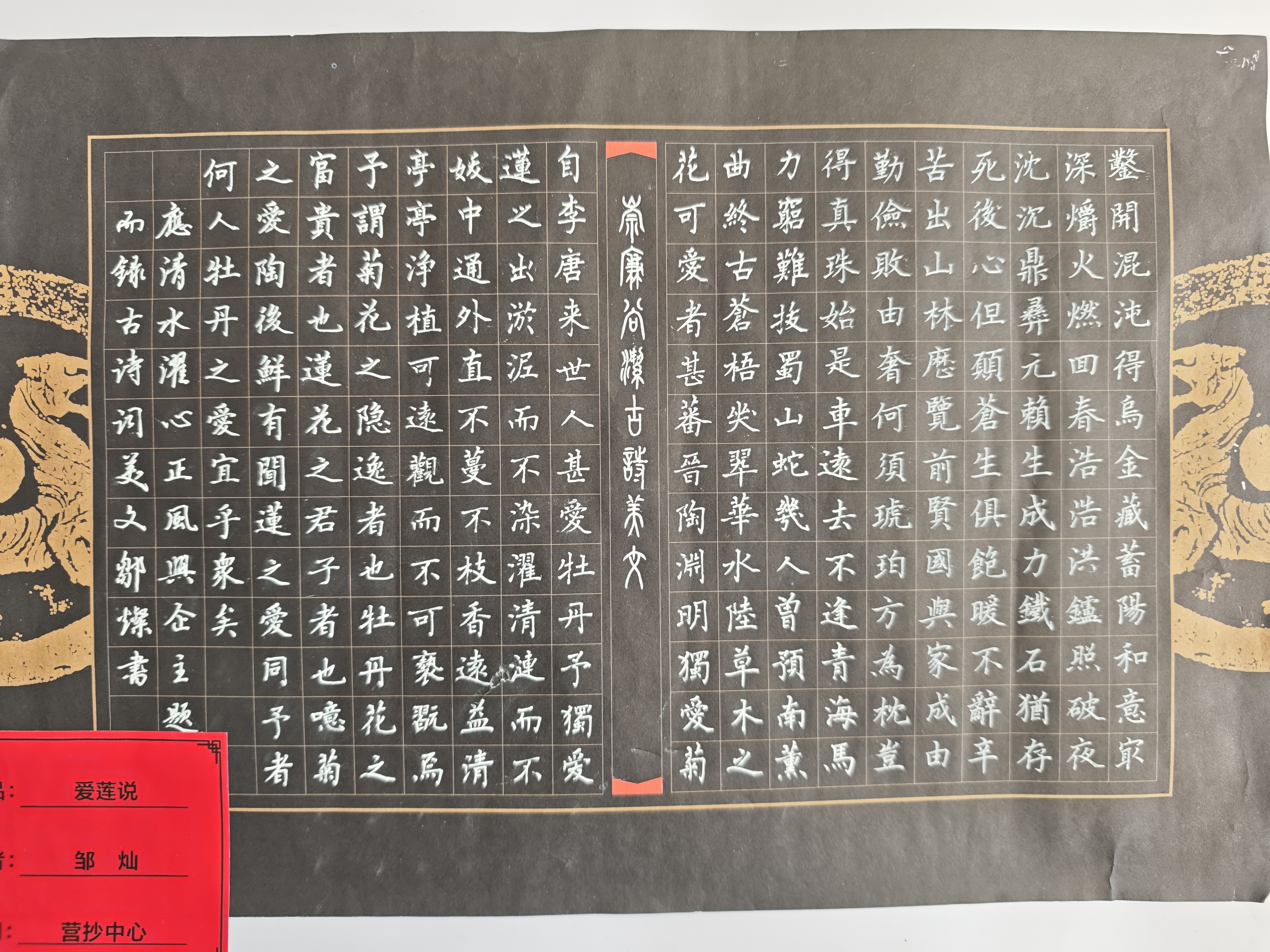 經(jīng)活動(dòng)組委會(huì)評(píng)選,作品《愛(ài)蓮說(shuō)》《一枝一葉總關(guān)情》《廉潔之路》分獲書法類(硬筆)、書法類(軟筆)、攝影類一等獎(jiǎng)。