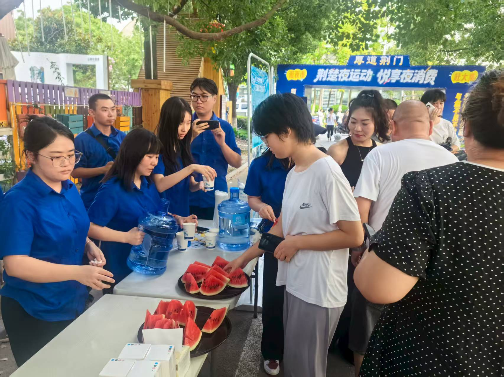 7月29日晚,市水務(wù)集團(tuán)慧泉房產(chǎn)公司攜手龍泉直飲水公司,帶著清涼好禮,結(jié)伴奔赴生態(tài)運(yùn)動公園“逛夜市,趕大集”。