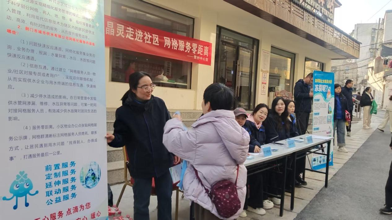 11月26日,荊門水務(wù)集團(tuán)在塔影社區(qū)開展“水晶靈·網(wǎng)格服務(wù)零距離”主題活動,圍繞“水晶靈”服務(wù)品牌推廣、網(wǎng)格化服務(wù)介紹及供水設(shè)施防凍保暖等核心內(nèi)容,為居民送上全方位的用水服務(wù)。