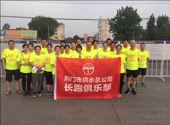 5月2日上午,荊門市供水總公司長跑俱樂部24名職工組成的長跑團隊在“愛飛客”2016荊門國際馬拉松賽場一展風采。