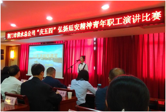 為紀念“五四”青年節(jié),激勵廣大青年員工更好地繼承和弘揚“延安精神”,5月4日下午,荊門市供水總公司開展了以“我與企業(yè)共成長 我為供水添光彩”為主題的青年職工演講比賽。荊門市延安精神研究會、市總工會和市文明辦、團市委、市住建委相關(guān)領導應邀出席。