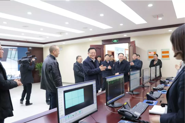 2018年剛完成升級改造的供水調度監(jiān)控中心寬敞明亮、恢弘別致。張愛國詳細查看了應急指揮系統(tǒng)運行情況,并對供水生產經營情況進行了詢問。