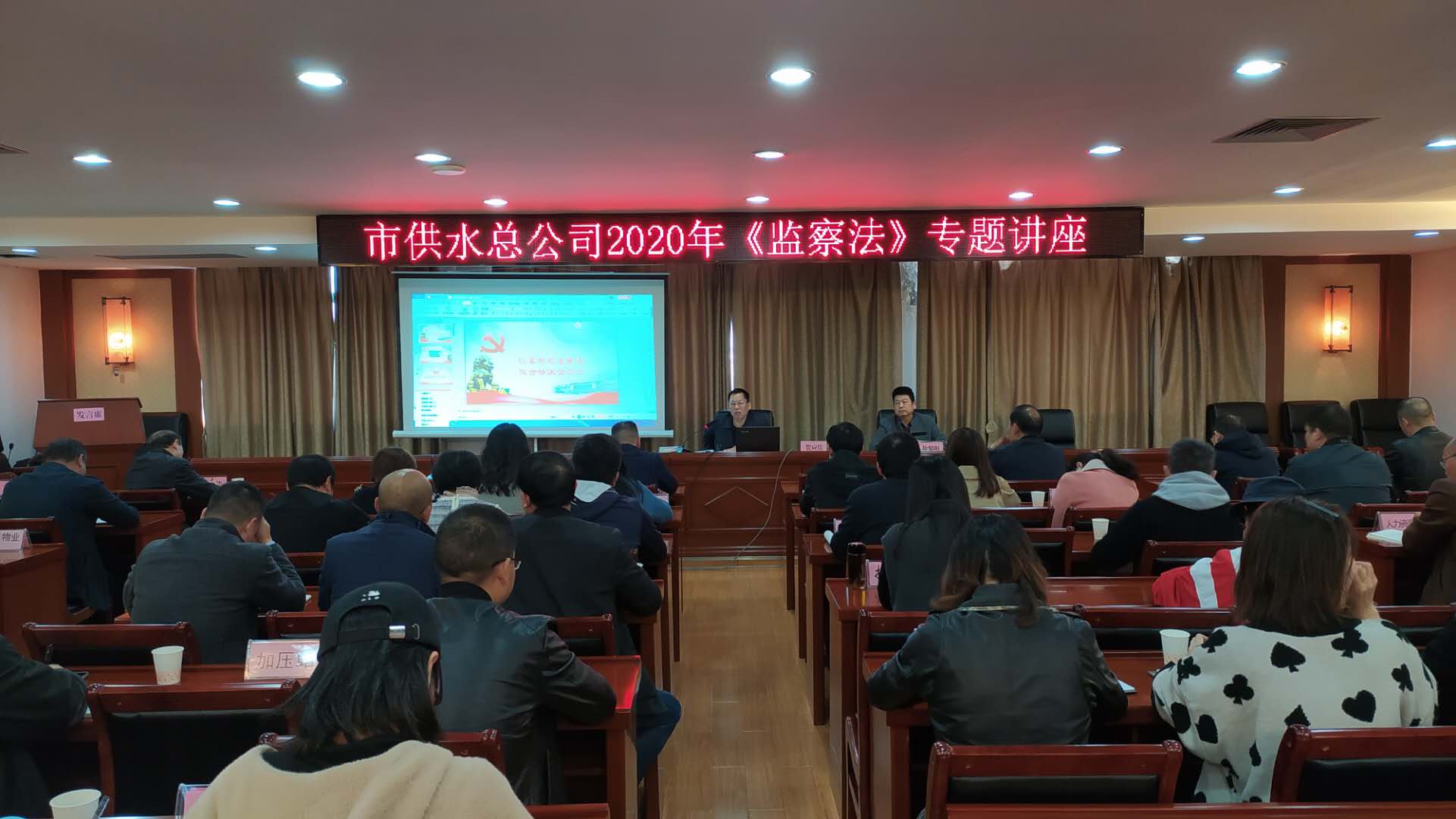 為推動(dòng)廣大黨員干部學(xué)習(xí)貫徹好《監(jiān)察法》,10月29日上午,市供水總公司舉辦《監(jiān)察法》專題講座。市紀(jì)委監(jiān)委駐市政府國資委紀(jì)檢組組長賀應(yīng)佳應(yīng)邀授課。公司黨委副書記、紀(jì)委書記徐黎明主持講座,公司在家的黨委班子成員、中層干部、每支部2名黨員代表和機(jī)關(guān)全體工作人員參加專題學(xué)習(xí)。