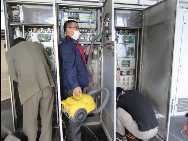 4月25日,夏季供水高峰季節(jié)即將到來,市供水公司三水廠組織維修人員對廠送水泵房1#500kw變頻機(jī)組進(jìn)行了整體檢修。圖為專業(yè)人員正在檢修變頻柜。